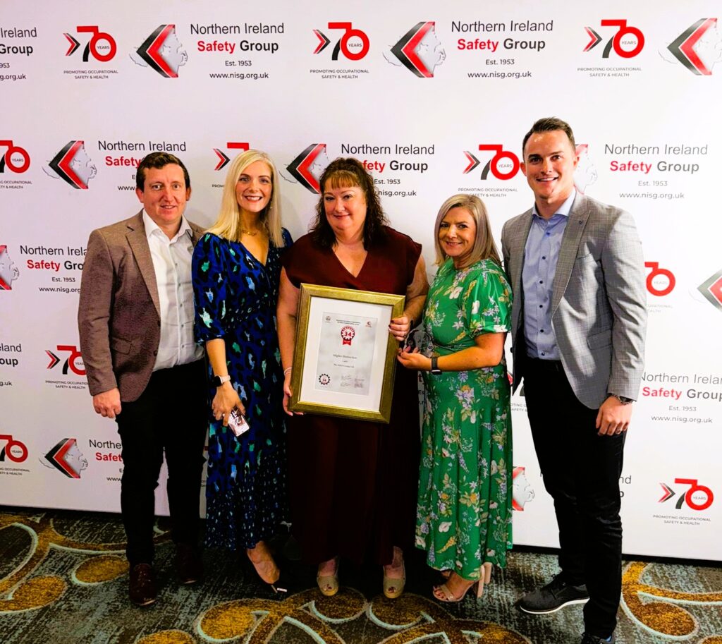 H&A Group is proud to have received a Higher Distinction Award at the NISG – Northern Ireland Safety Group Awards, held at the La Mon Hotel & Country Club in Belfast, as part of the NISO / NISG All-Ireland Occupational Safety Awards 2025.